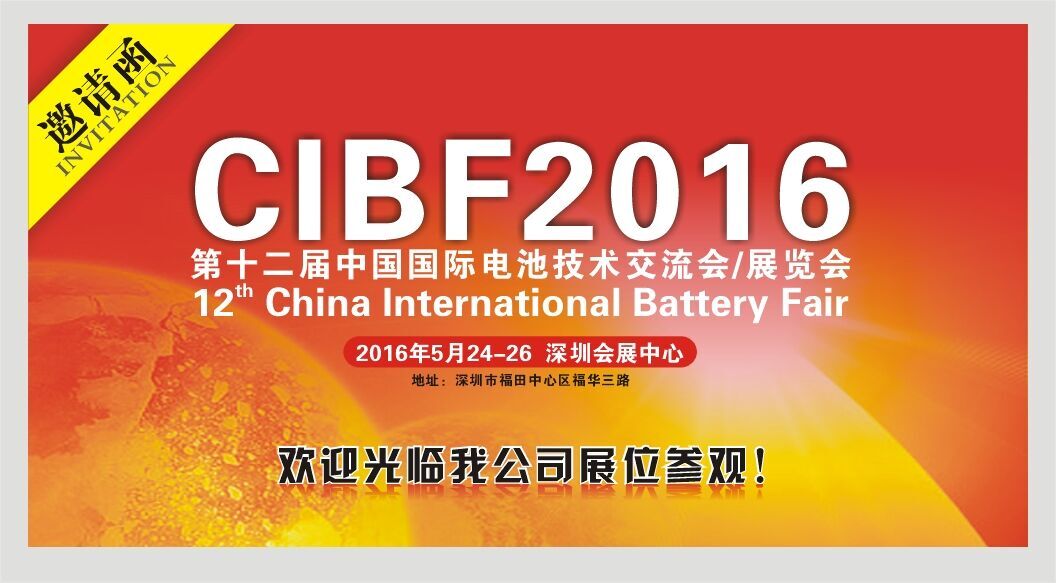 ? ? ? ?2016年5月24日-26日 ?第十二屆中國(guó)國(guó)際電池技術(shù)交流會(huì)/展覽會(huì)將在深圳市福田中心區(qū)福華三路,深圳會(huì)展中心召開,我司展位號(hào):9F90號(hào),歡迎廣大新老客戶,到我公司展位區(qū)域了解新產(chǎn)品和行業(yè)技術(shù)交流。